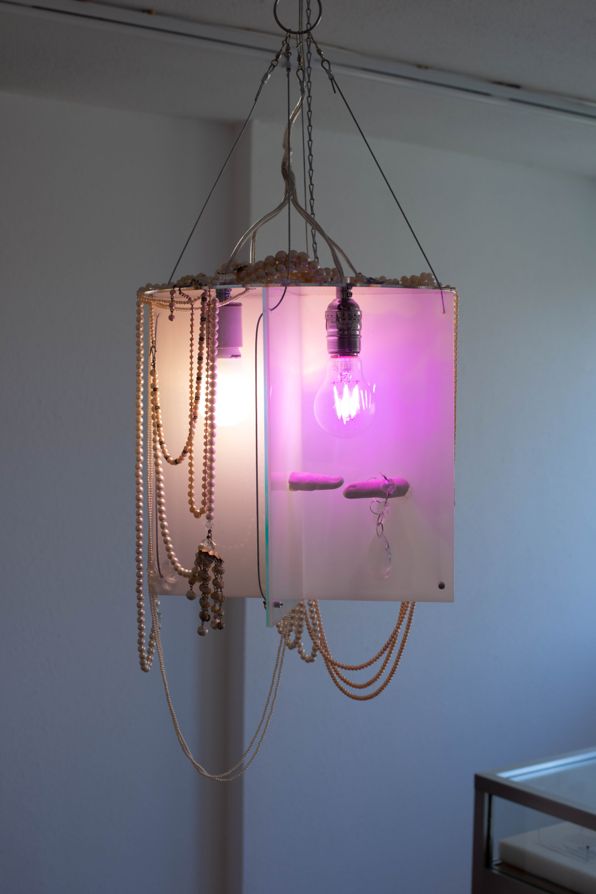Acrylglas, Metallwaren, Gips, Perlen, Vinyl, Leuchtmittel, Kabel, Grösse variabel, 2019