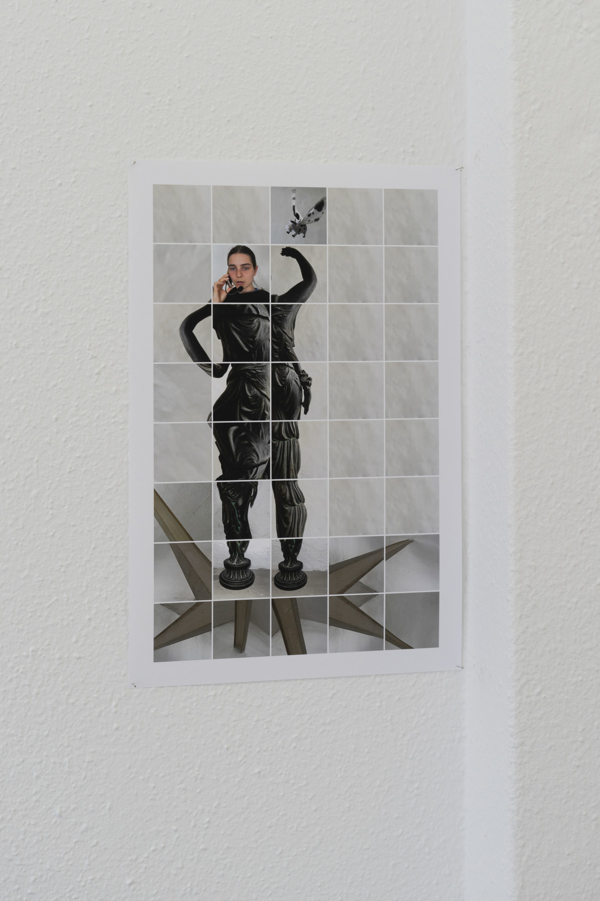 The breaks in the implementation of the exhibition made us almost superstitiously doubtful. If we would have abandoned the exhibition, only this feeling of failure would have remained. Also our fear that the transport person would ghost us... maybe an exhibition with only the one work that Mara brought by train would have been pretty good too. Oh well. A failed first attempt, fear of further failure, and now here we are. Mara and I printed her collages today, talking about Magic cards and ill-fated teenage love. I‘m so happy that she‘s here now.