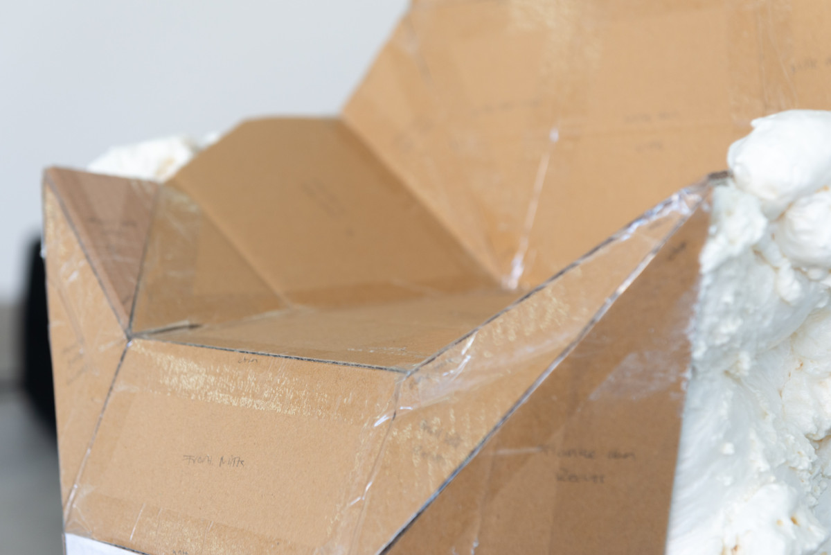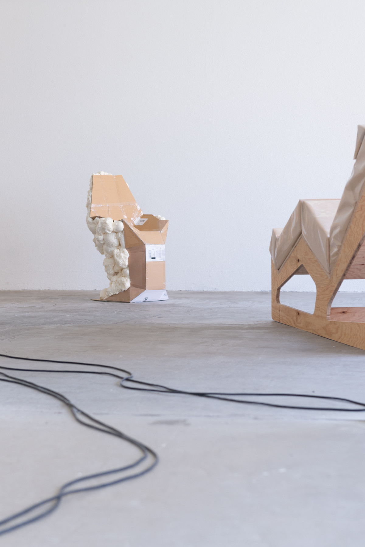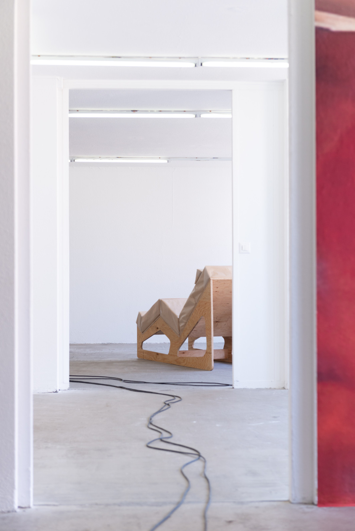 I understand that the shapes you offer me are frail and cannot comfort me in a moment of need. There is something familiar yet unsettling about the way you are suggesting a space – the very nature of it taunts me. A matrix of uncomfortably lit rooms. A chair, just a little too big, makes for a slight displacement in the signified object. Is it a real place? Perhaps. Either way, I can only vaguely position myself here. The closer I get, the further away I seem to be. You deliberately mirror something right in front of me – every little element in the room an inversion of what I – we – have been doing here.